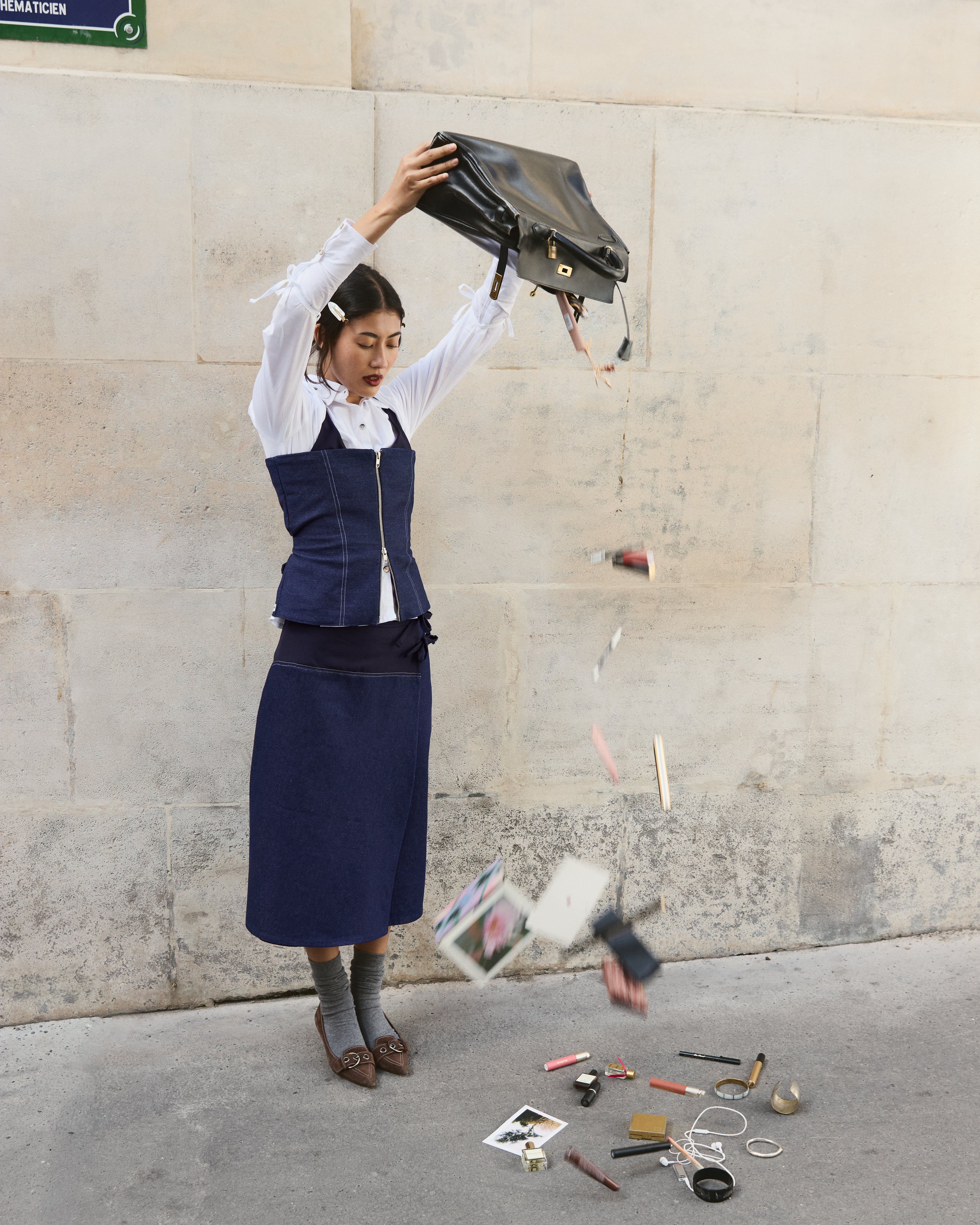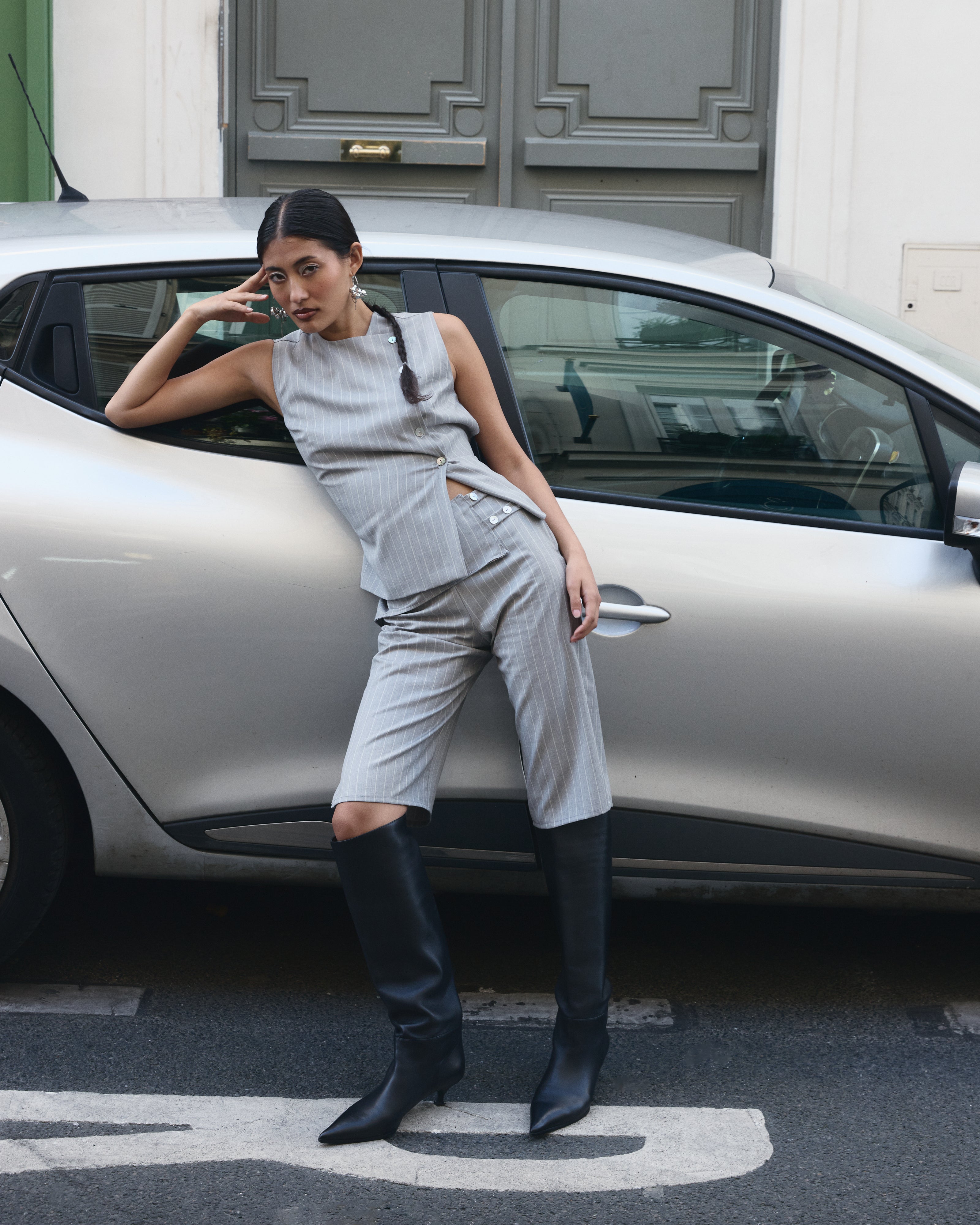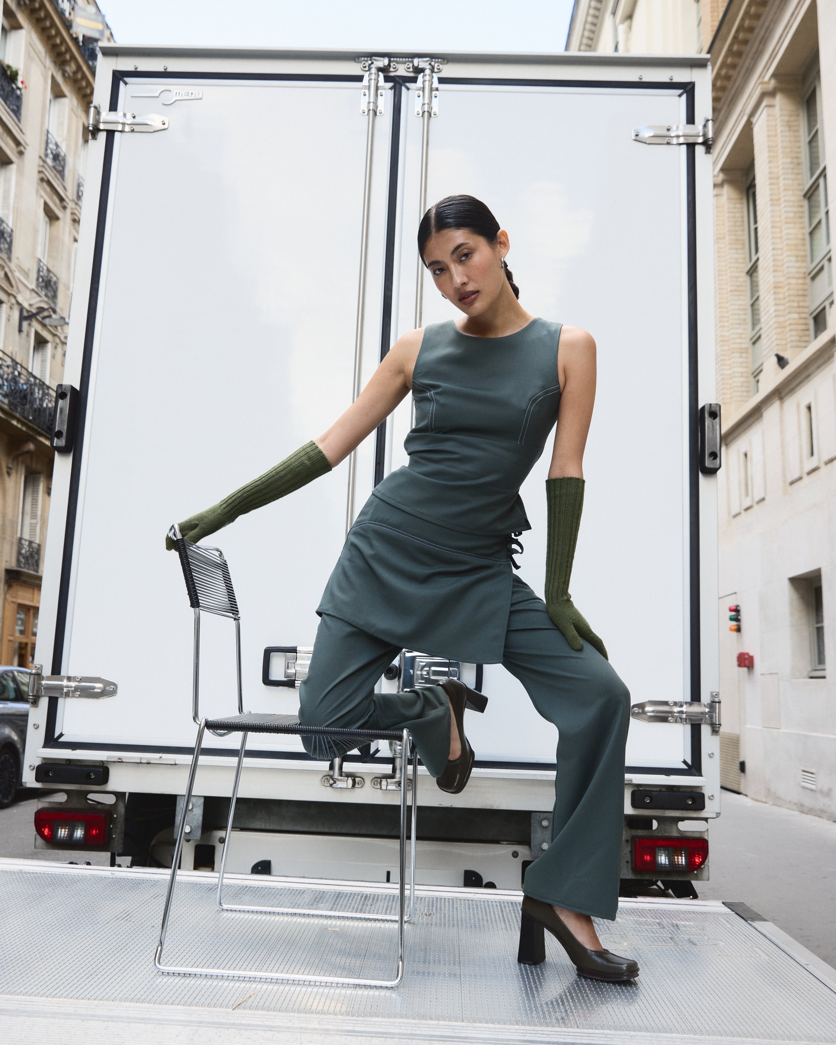 Pour l’automne-hiver, la collection « Working Girl » trace les contours d’une féminité affirmée, inspirée du tailoring. Jupes précises, pantalons structurés, blouses à double lecture : chaque pièce réinvente les codes du vestiaire professionnel avec une modernité subtile et audacieuse.