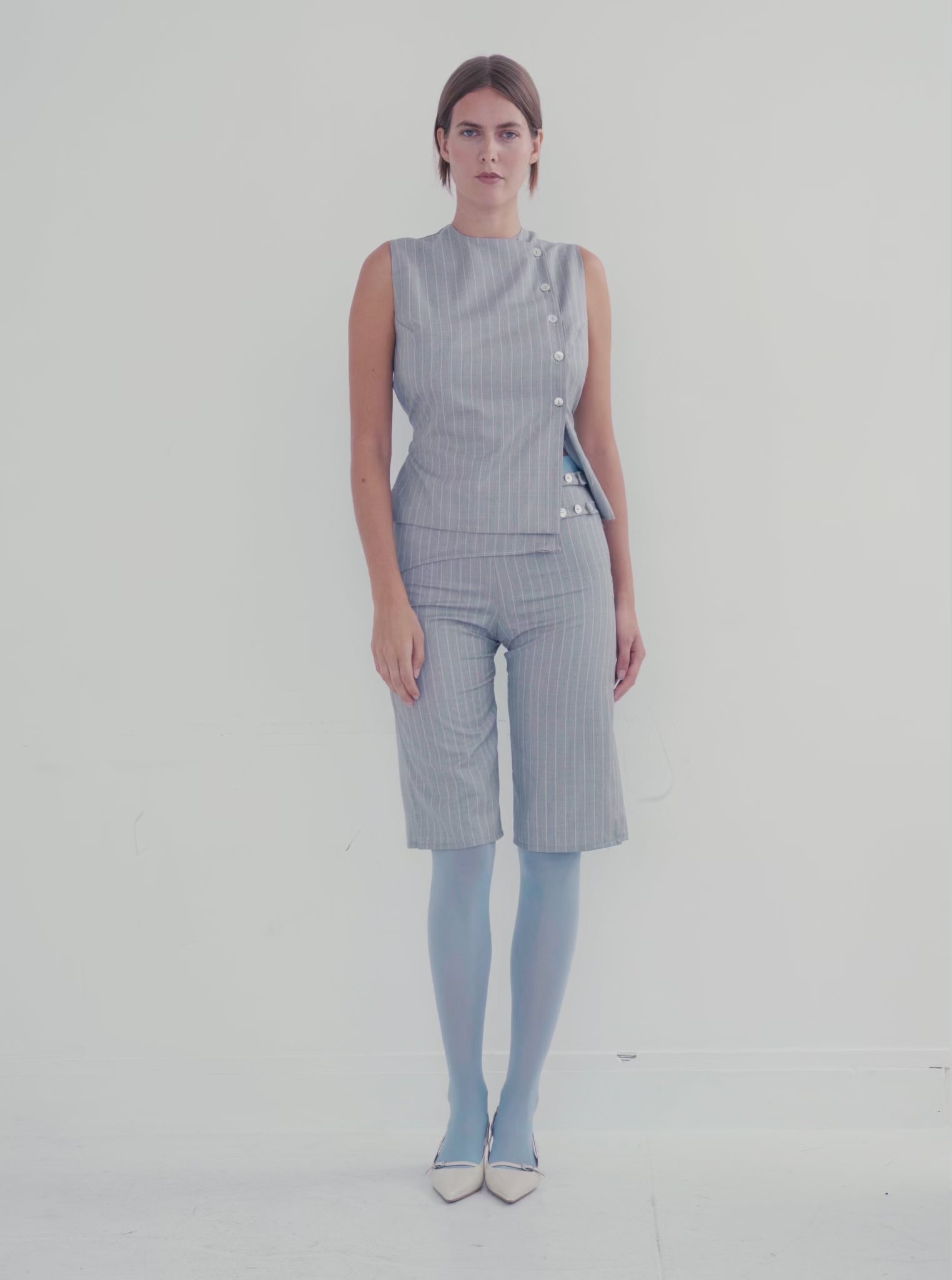 Sa coupe ajustée et droite est soulignée par une découpe aux hanches, empruntée à nos jupes, qui lui donne une touche singulière. Pensé pour se porter en ensemble avec le top Chiara, il s’impose comme une pièce à la fois intemporelle et mode.