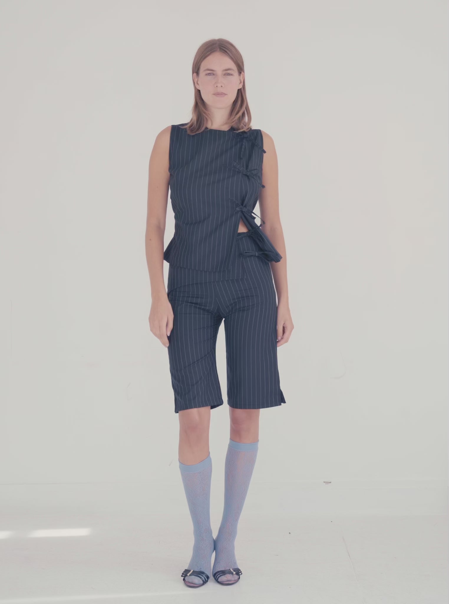 Sa coupe ajustée et droite est soulignée par une découpe aux hanches, empruntée à nos jupes, qui lui donne une touche singulière. Pensé pour se porter en ensemble avec le top Chiara, il s’impose comme une pièce à la fois intemporelle et mode.