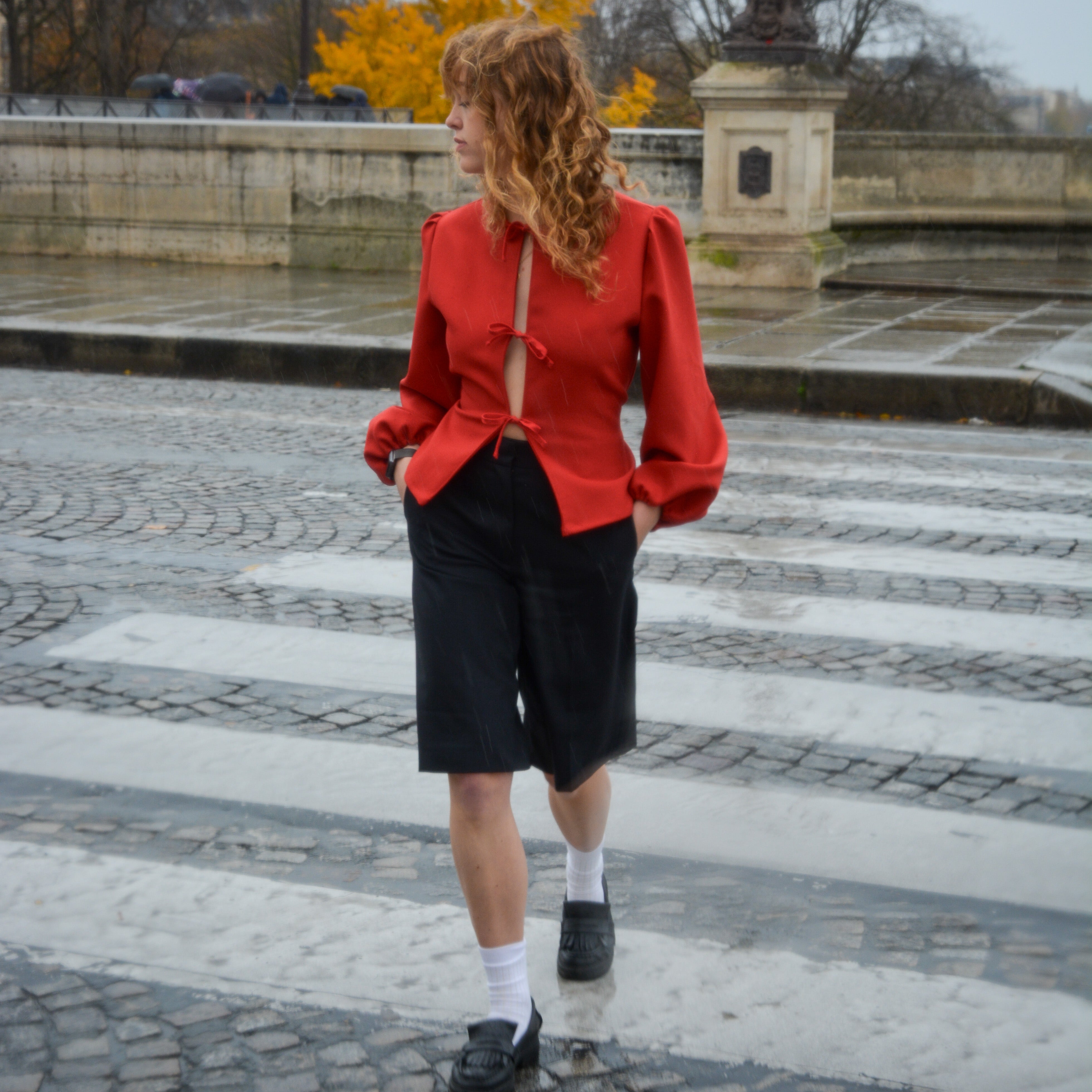 Ava, la blouse réversible en laine qui signe une allure féminine et moderne. Confectionnée à Paris.